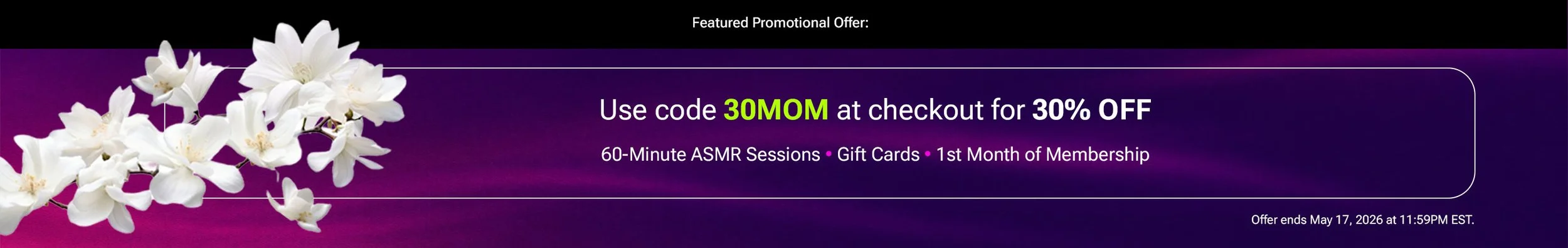 Sign up below to receive special offers like 20% OFF your first session, exclusive discount codes, and other ASMR event news.